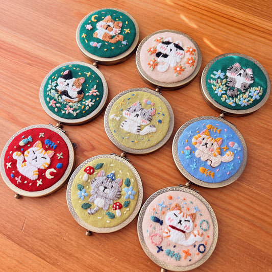 Dreaming Cats Ver 02 - Hand Embroidered Mirror