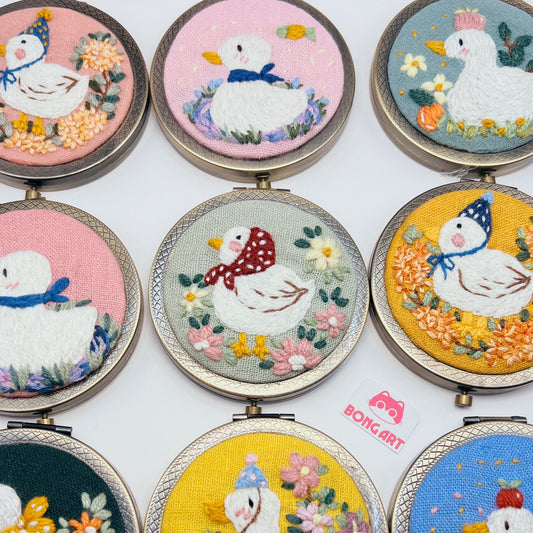 Dreaming Ducks - Hand Embroidered Mirror